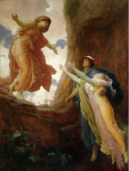 The Return of Persephone by Frederic Leighton captures the dramatic moment when Demeter is reunited with her daughter Persephone. Although the focus is on Persephone, Demeter's presence on the right is significant, symbolizing the restoration of fertility and the cycle of life and death.