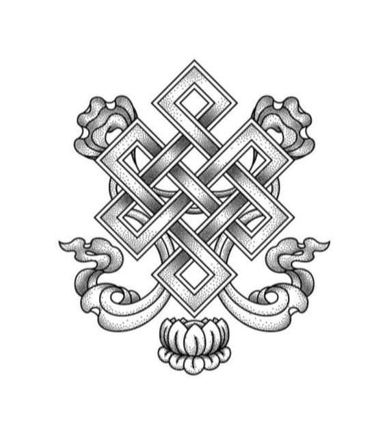 In Tibetan Buddhism, the endless knot, also known as the Shrivatsa, is a sacred emblem that resembles the infinity symbol in its continuous, interwoven form. The knot has no beginning or end, representing the eternal flow of time and the interconnectedness of all life and phenomena. Deeply rooted in Buddhist teachings, it symbolizes the infinite cycle of birth, death, and rebirth, reflecting the belief in samsara—the cycle of existence. The knot also embodies the union of wisdom and compassion, two fundamental principles in Buddhism. It serves as a reminder that everything is interconnected and that actions and intentions have boundless impacts across time and space, much like the endless loops of the symbol itself.