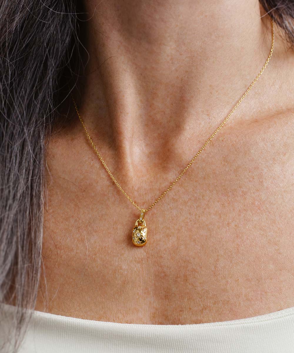 This Constellation Amulet Necklace features the radiant Constellation Amulet paired with a 1.2mm shimmering diamond-cut chain, both meticulously crafted from premium 925 Sterling Silver and finished in rich 18k Gold Vermeil.