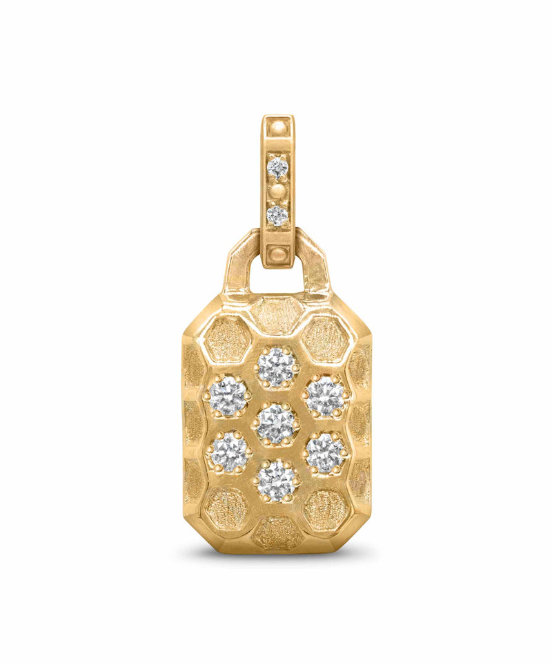 Meticulously crafted in Sterling Silver with 18k Gold Vermeil and set with the finest White Topaz, this medium-sized amulet captures the symbolic language of the Honeycomb. Each perfect hexagonal cell, a testament to unity, diligence, and harmony, reflects nature’s artistry and the profound beauty of collective effort. The honeycomb serves as a reminder of the enduring power of cooperation and dedication, weaving together the threads of abundance and harmony to achieve life’s most graceful successes.