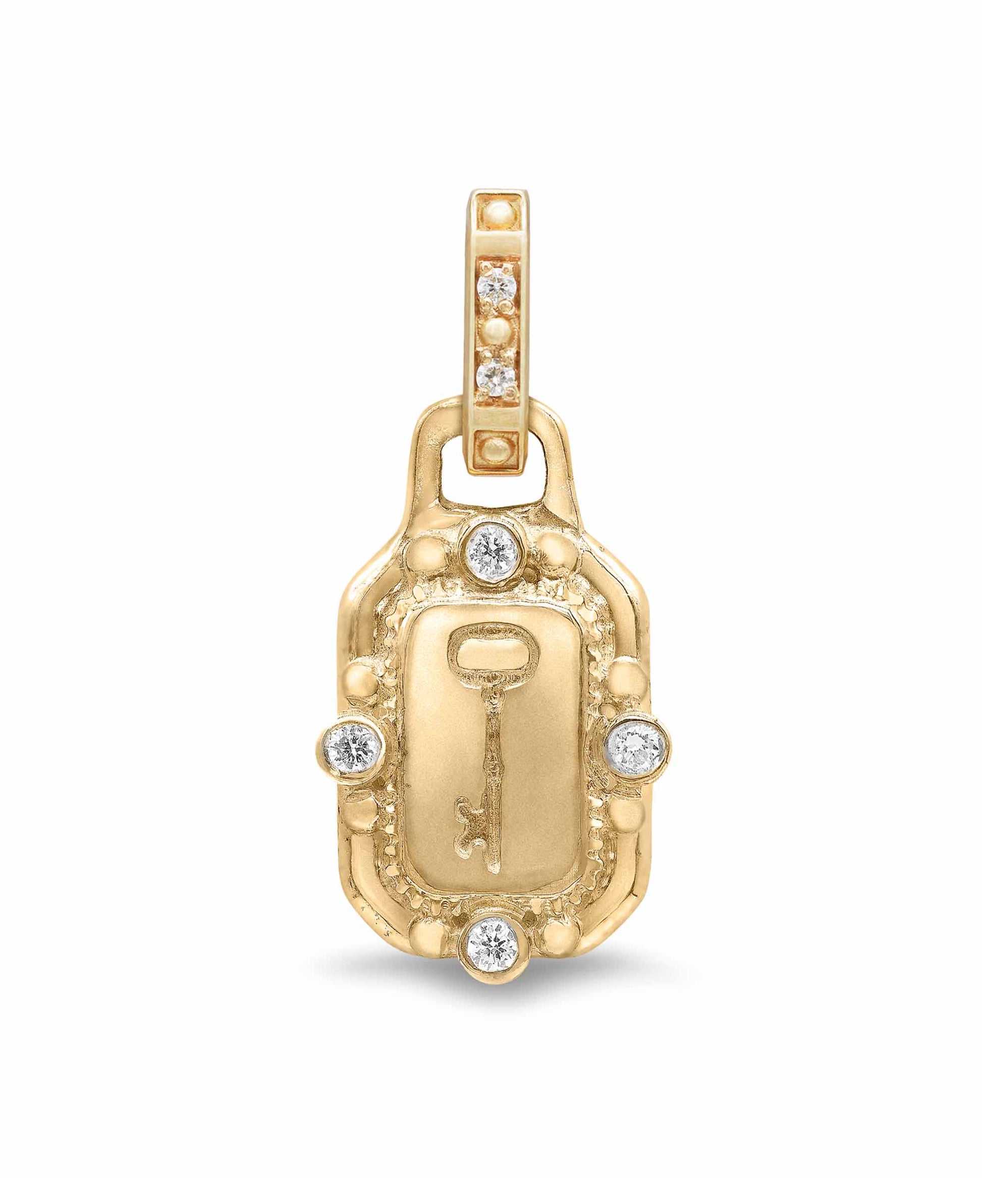 Crafted by hand from Sterling Silver with a 18k Gold Vermeil finish and embellished with premium White Topaz, this small-sized amulet features a symbolic motif of the Key. The key represents unlocking potential and embracing new opportunities while closing the door on past burdens. Adorned with beautiful gemstones, it symbolizes the preciousness of these opportunities and the balance between exploring new paths and protecting what matters most.